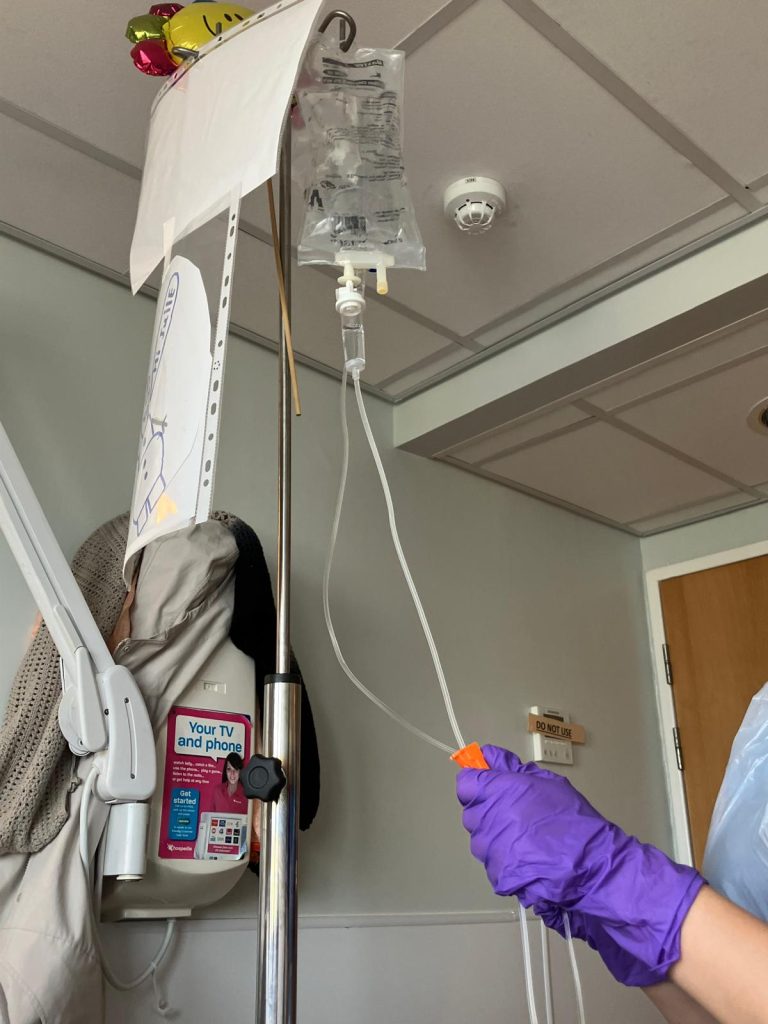 Photo of the sky at the exact moment they gave me the chemo! The fog then decided to clear. Everything went well and I feel great. Maybe a little nap this afternoon. Sending love